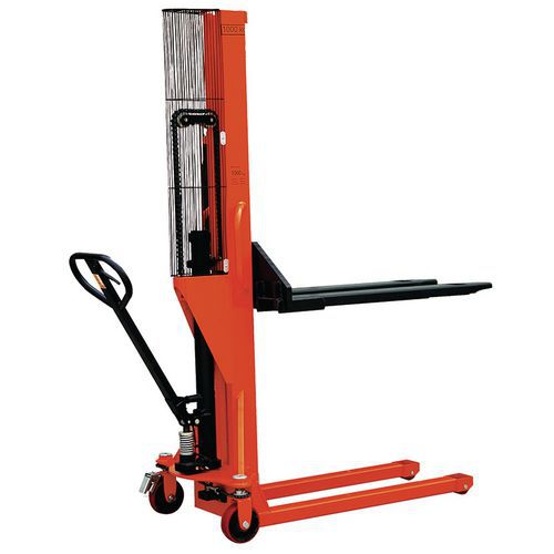 | Intitulé du produit | Gerbeur manuel à mât poutre, Force: 1000 kg, Hauteur de levée maxi: 1700 mm, Fourche longueur: 1150 mm |
