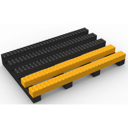 Caillebotis souple antidérapant et antifatigue en rouleau. Bordure jaune biseautée facilitant les passages. Excellent drainage des fluides et petits débris. Surface antiglisse de type pointe de diamant. Productivité augmentée et fatigue réduite.