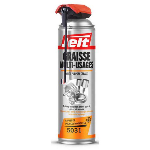 | Intitulé du produit | Graisse multi-usage Jelt, Aérosol brut/net: 650/500 mL, Nature du savon: Lithium/MoS2, Huile nature: Minérale |