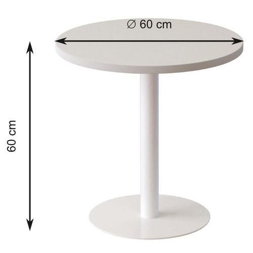 Plateau mélaminé épaisseur 25 mm avec chant ABS 2 mm Plateau diamètre 60 cm Pied acier laqué époxy blanc antirayure. Piètement central sur socle acier laqué époxy blanc anti-rayure. Socle Ø 49,5 cm, épaisseur 4 mm. Livré prêt à monter avec notice.