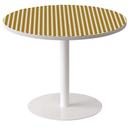 Guéridon Ø 80 cm plateau coloris Décor, Largeur: 80 cm, Forme: Rond, Plateau coloris: Jaune, Hauteur: 60 cm Guéridon Ø 80 cm plateau coloris Décor, Largeur: 80 cm, Forme: Rond, Plateau coloris: Jaune, Hauteur: 60 cm