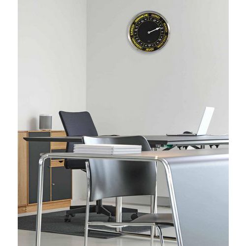 | Intitulé du produit | Horloge Contraste Hebdo Ø30, Horloge affichage: Analogique (à aiguilles), Forme: Rond, Coloris: Noir |