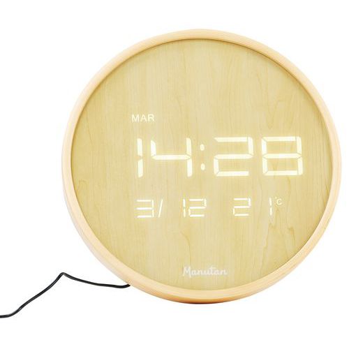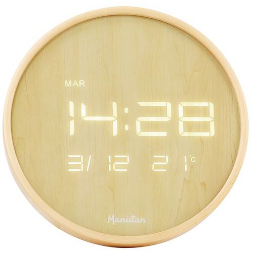 | Intitulé du produit | Horloge murale LED ronde bois, Horloge affichage: Numérique, Forme: Rond, Coloris: Marron, Largeur: 32 mm |