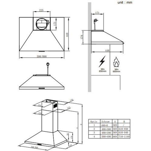 | Intitulé du produit | Hotte aspirante, Débit d'air: 448 m³/h, Coloris: Argent, Modèle: KH92-3INOX, Niveau sonore: 65 dB |
