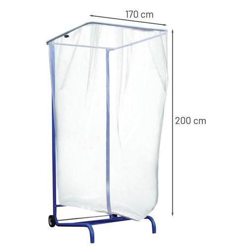 Housse transparente pour conteneur grand volume. Idéale pour les ateliers et entrepôts. Permet de vérifier facilement le contenu. Indique quand le sac est plein.