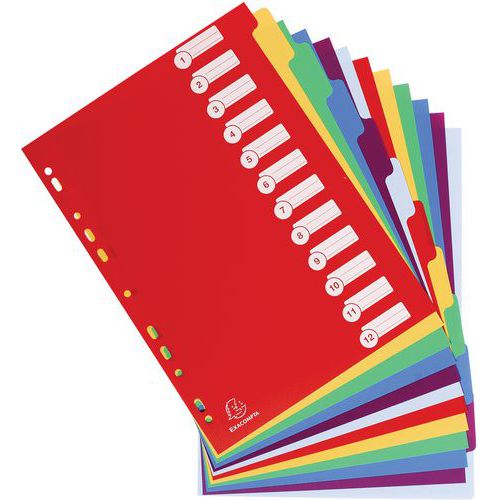 | Intitulé du produit | Intercalaire polypropylène opaque (lot de 15 assortis), Nb de divisions: 20, Coloris: Multicolore |