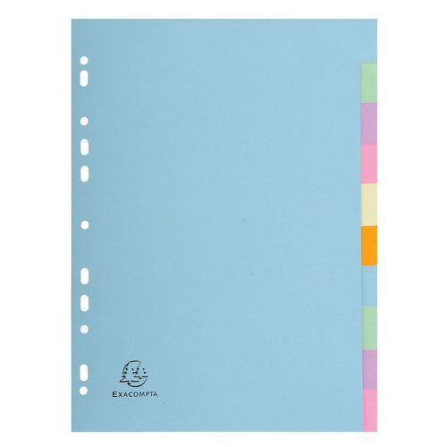 | Intitulé du produit | Intercalaires carte pastel 180g forever 10 positions A4, Nb de divisions: 10, Pour format: 210 x 297 mm (A4) |