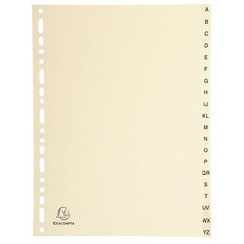 | Intitulé du produit | Intercalaires carte peau 155g 20 positions de a à z A4, Nb de divisions: 20, Coloris: Beige |