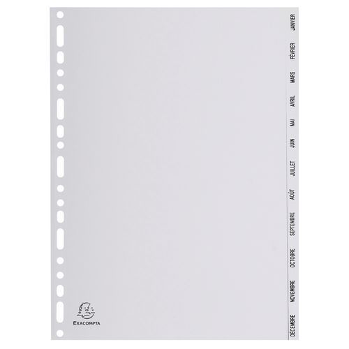 | Intitulé du produit | Intercalaires mensuels pp gris janvier-déc. 12 positions A4, Nb de divisions: 12, Coloris: Gris |