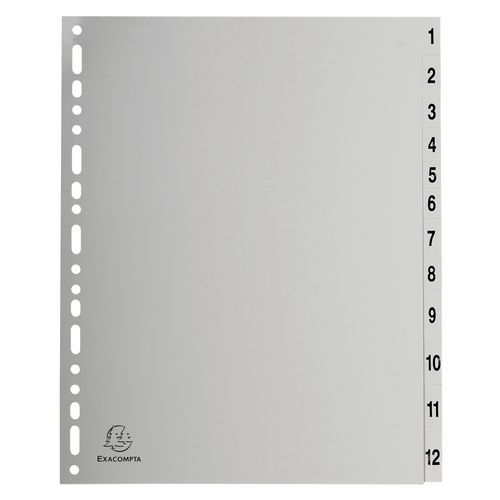 | Intitulé du produit | Intercalaires numériques pp gris 12 positions A4 maxi, Nb de divisions: 12, Coloris: Gris |