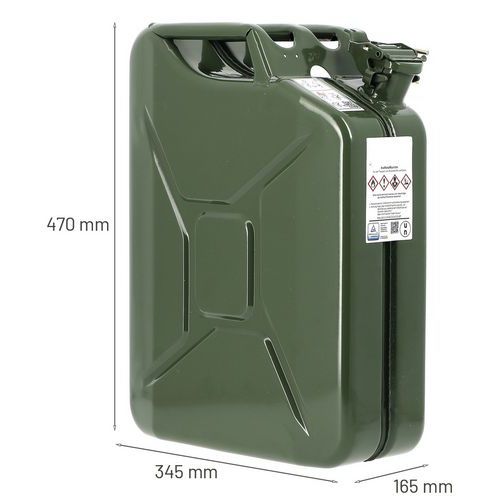 | Intitulé du produit | Jerrican essence, Capacité: 20 L, Coloris: Vert, Type: Essence, Longueur: 345 mm, Largeur: 165 mm |