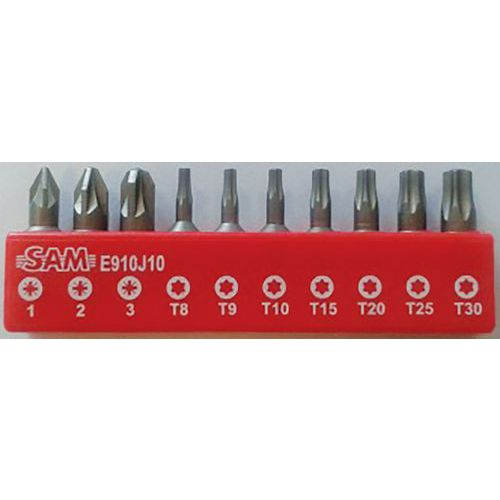 | Intitulé du produit | Jeu 10 embouts vissage pour materiaux durs pozidriv, Empreinte vis: Torx, Réf. Fabricant: E-910J10 |