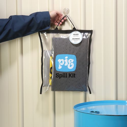 | Intitulé du produit | Kit anti-déversement universel transparent PIG®, Liquides absorbés: Tous liquides |