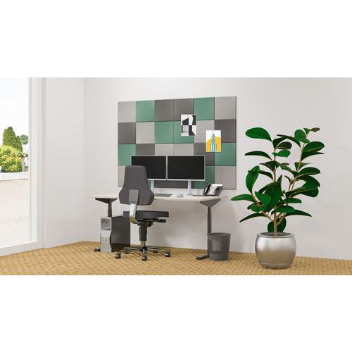 Kit combiné 24 dalles murales feutre PET acoustique, Hauteur: 30 cm, Panneau coloris: Vert/gris Kit combiné 24 dalles murales feutre PET acoustique, Hauteur: 30 cm, Panneau coloris: Vert/gris