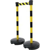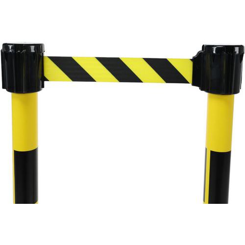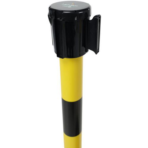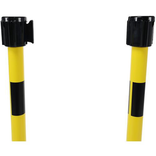 Kit composé de : 2 poteaux dont l'un avec 1 tête avec sangle de longueur 3 m, largeur 50 mm rétractable et l'autre avec d'1 tête réceptrice.