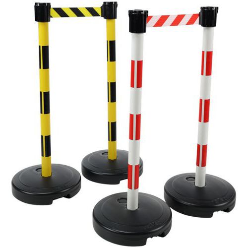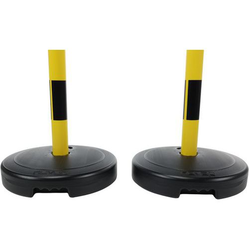 Poteaux à lester sur socle à sangle étirable.