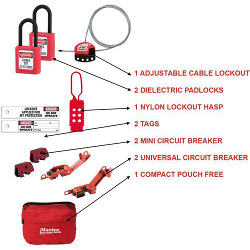 | Intitulé du produit | Kit de consignation générale Maintkit-En, Coloris: Rouge, Matériau: Élastomère thermoplastique (TPE) |