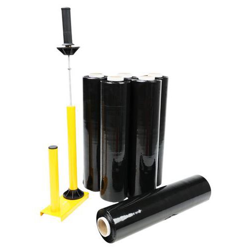 | Intitulé du produit | Kit film étirable cast opaque avec dérouleur acier, Épaisseur: 17 µm, Longueur: 300 m, Laize: 450 mm |