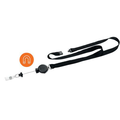 | Intitulé du produit | Lacet textile avec enrouleur pour badge extra résistant, Coloris: Noir, Longueur: 120 mm, Largeur: 110 mm |