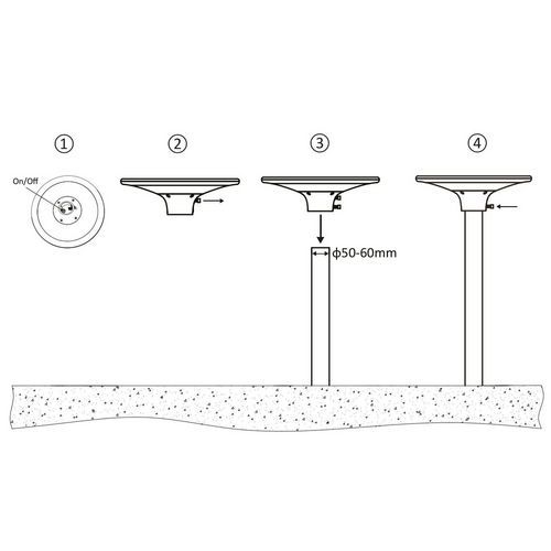 Lampadaire solaire à LED en polycarbonate anti UV et ABS, design contemporain et extrêmement raffiné , résistant aux chocs et aux intempéries , la partie électronique est particulièrement résistante à l'eau (IP65). Fonctionnement : la lampe se recharge pendant la journée, grâce aux rayons du soleil. La lampe s'allume automatiquement la nuit et maintient une luminosité de 100 % pendant les 3 premières heures, une luminosité de 70 % pendant les 2 heures suivantes, puis une luminosité de 50 % jusqu'à l'aube (ou l'épuisement de la batterie). Avec le système de gestion intelligent, la lampe ajustera la luminosité en fonction de la capacité dynamique de la batterie. La lampe est équipée de LED SMD de dernière génération avec un diffuseur performant : la lumière est homogène , Lumière 4000K : ni trop chaude ni trop froide. Équipée d'un panneau solaire monocristallin de 11,5W et d'une batterie Li-Ion de 6000mAh, la lampe garantit une autonomie allant jusqu'à 32 heures (basée sur la charge reçu