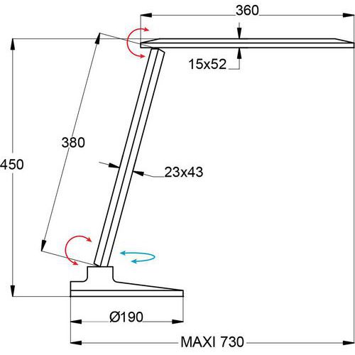 Avec bras orientable sur 3 axes avec rotation de 360°.