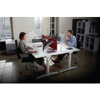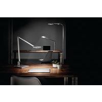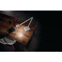 Lampe de bureau à LED au design très fin avec un élégant bras articulé en aluminium à 2 éléments et passage des câbles invisible. Socle en pince. Longueur du câble d'environ 2 m. Teinte de la lumière : blanc chaud (température de couleur 3 000 K) Fabriqué en Allemagne