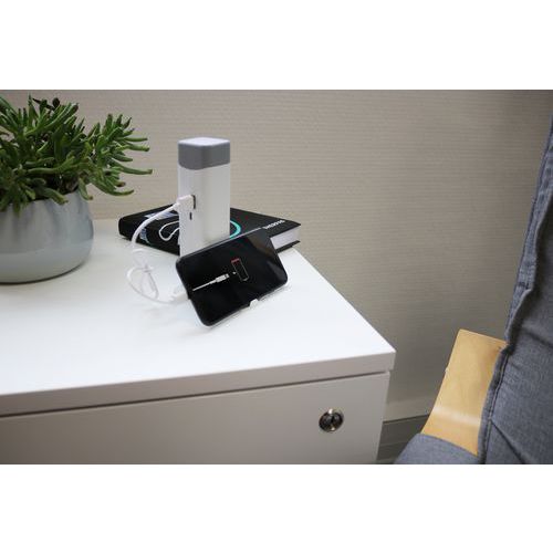Idéale pour les petits espaces de travail avec son pied amovible pour poser votre smartphone. Sa batterie intégrée permet une bonne stabilité et la recharge de votre smartphone.