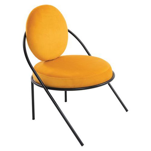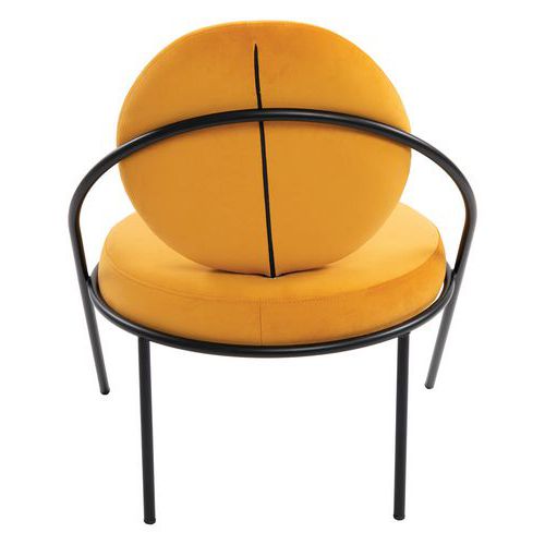 Design contemporain Seconde Vie : Possibilité de changer assise et dossier pour une durée de vie infinie, non déhoussable Empilable Structure: tube Ø20 mm en acier 100% recyclé, finition époxy Assise: panneau contreplaqué, épaisseur 12 mm Garniture assise: mousse polyuréthane 30 kg/m3, épaisseur 70 mm Garniture dossier: mousse polyuréthane 30 kg/m3, épaisseur 60 mm