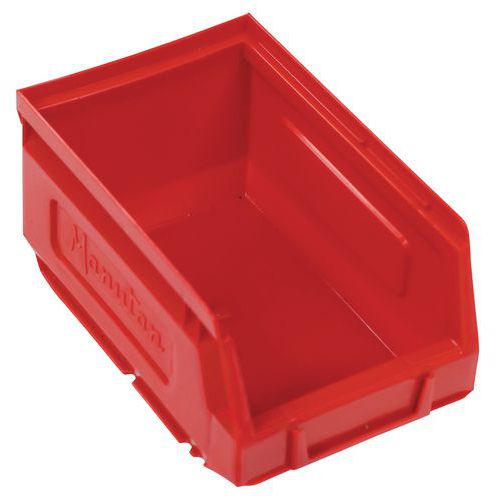 Rebords avec plots de blocage pour stabilité au gerbage. Grande robustesse grâce à ses nervures latérales. Fond plat et antidérapant pour une prise facile. Excellente prise en main par poignée avant. Bac plastique haute résistance aux chocs. Identification facile via porte-étiquette. Fabriqué en UE