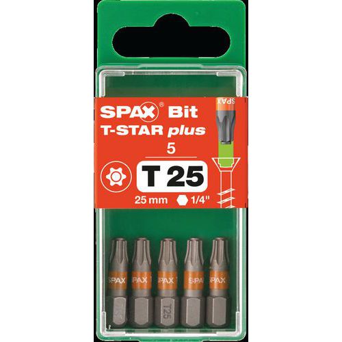 | Intitulé du produit | Lot de 5 embouts de vissage T25 pour vis T-Star Plus (TX), Empreinte vis: Torx, Réf. Fabricant: 5000009192259 |