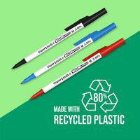 Des stylos fiables, fabriqués à partir de 80 % de plastique recyclé et présentés dans un emballage recyclable sans plastique.