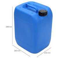 Jerrican plastique homologué pour le transport de marchandises. Haute résistance aux chutes, à la pression hydraulique et au gerbage. Emballage d'étanchéïté parfaite : résultat d'épreuve au test de pression d'air. Jerrican de portage et manutention de grand confort avec poignée supérieure. Grande ouverture avec bouchon à vis, articulé et indicateur d'ouverture.