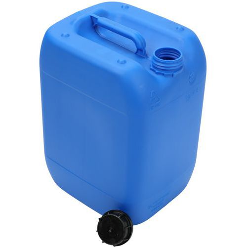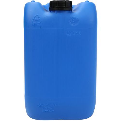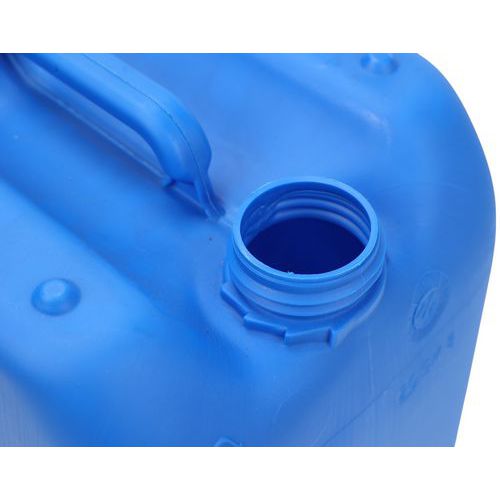 Jerrican plastique homologué pour le transport de marchandises. Haute résistance aux chutes, à la pression hydraulique et au gerbage. Emballage d'étanchéïté parfaite : résultat d'épreuve au test de pression d'air. Jerrican de portage et manutention de grand confort avec poignée supérieure. Grande ouverture avec bouchon à vis, articulé et indicateur d'ouverture.