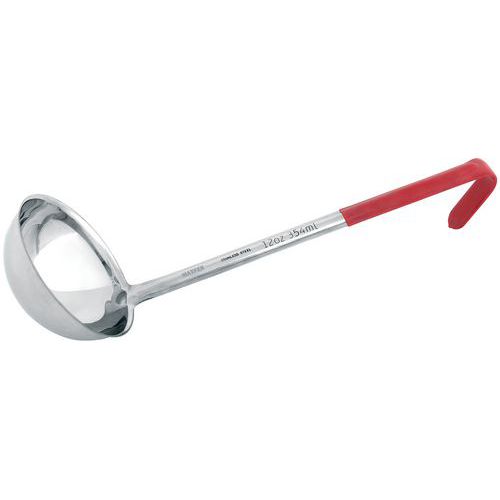 Louche inox à manche PVC de couleur.