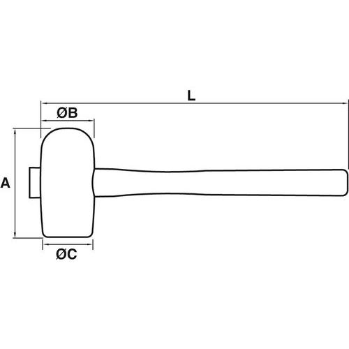 Maillet caoutchouc forme carreleur. un côté rond. un côté plat. manche frêne. Fabriqué en UE