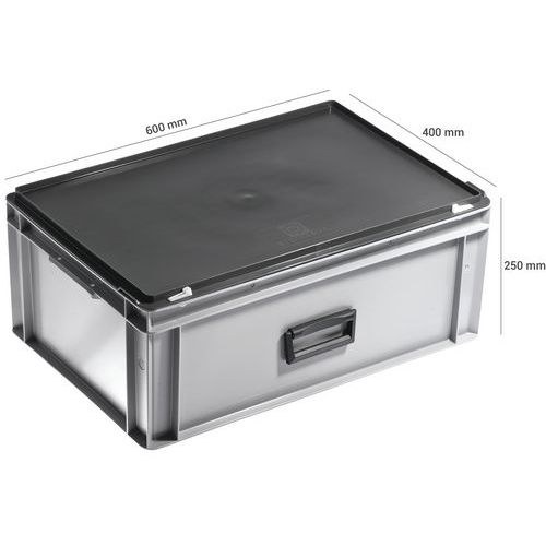 Poignées de transport fixées sur un grand côté pour une meilleur préhension du produit. Transportez votre contenu en toute sécurité : malette composé d’un bac RAKO (robuste et stable). Couvercle solidaire fermé par système de fermeture à ressorts. Identifiable par l’ajout d’un porte étiquette ou d’une pince étiquette. Polyvalent, possibilité d’ajouter des mousses de calage ainsi que des séparations (casiers modulaires). Dimensions Norme Europe. Malettes gerbables en pile.