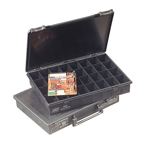 | Intitulé du produit | Mallette de transport antistatique, Charge maxi: 5 kg, Hauteur hors tout: 57 mm, Largeur hors tout: 260 mm |