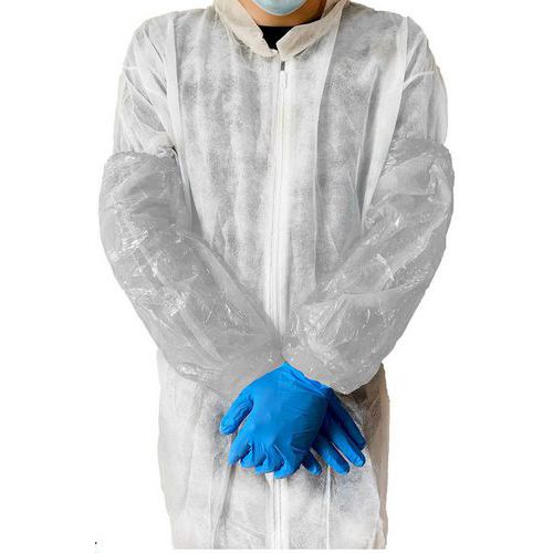 | Intitulé du produit | Manchette imperméable à usage unique transparente, Type de vêtement: Brassard, Matière: Polyéthylène |