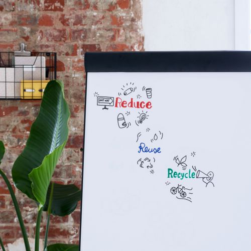 Marqueur avec au moins 90% du plastique utilisé provient de matériau recyclé. Pointe ogive idéal pour travailler sur du papier pour chevalets. Possibilité de glisser le capuchon sur l'embout du marqueur pour éviter de le perdre. Grâce à la technologie Cap-Off, il peut rester sans capuchon quelques semaines sans sécher. Clip pratique: empêche le marqueur de rouler et permet un accrochage à un vêtement ou objet. Spécialement conçu pour écrire et marquer sur du papier pour chevalets