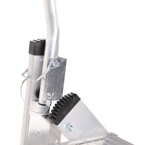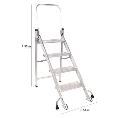 Marchepied léger et résistant à larges marches. Accès sécurisé avec garde-corps sur partie haute. Grande stabilité : double pieds au sol sur face avant. Rangement aisé avec pliage ultra-rapide de la structure. Antiglisse garanti avec pieds aluminium recouvert de caoutchouc.