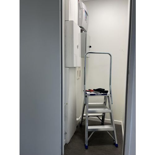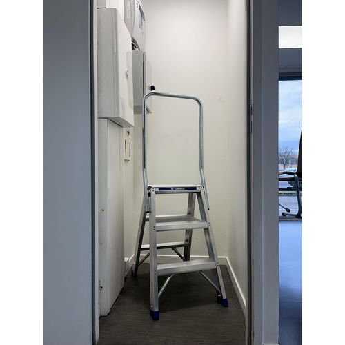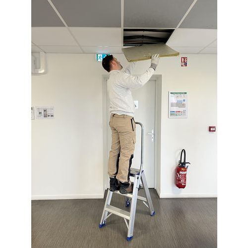 Marchepied double plans de montée en aluminium muni d'un système anti-écartement faisant office de repose...