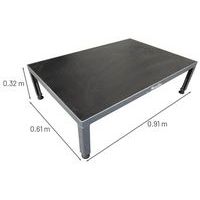 Marchepied-plateforme acier moyenne hauteur. Pieds filetés pour réglage à hauteur souhaitée. Position en hauteur fixée par contre-écrous. Plateau bois à revêtement antidérapant.
