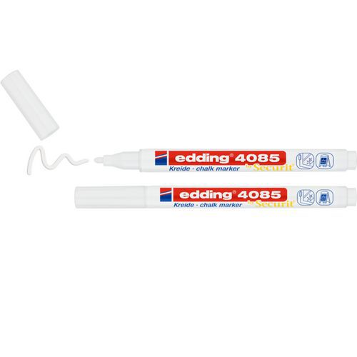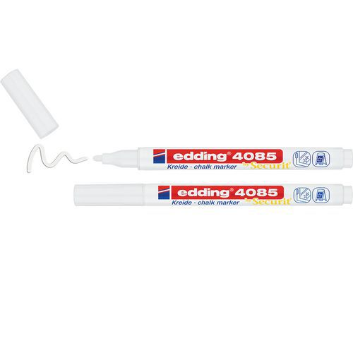 | Intitulé du produit | Marqueur craie liquide 4085 pointe fine Securit, Encre coloris: Blanc, Trait largeur mini: 1 mm |