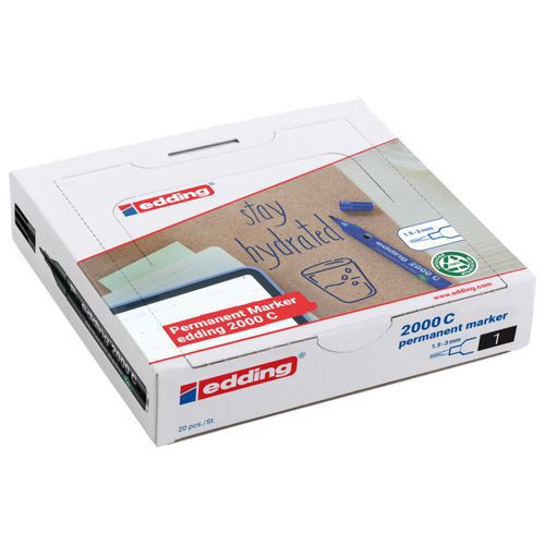 | Intitulé du produit | Marqueur permanent noir 2000C, Encre coloris: Noir, Trait largeur mini: 1.5 mm, Trait largeur maxi: 3 mm |