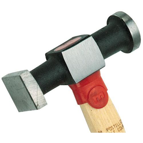 Marteau postillon. manche hickory très dur. haute résistance avec bagues de protection sous la tête et à l'extrémité du manche. 1 tête ronde. 1 tête carrée