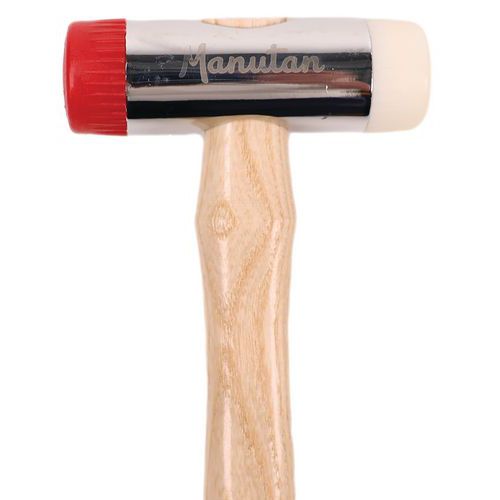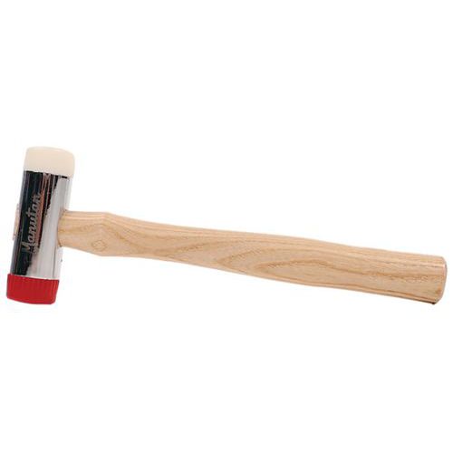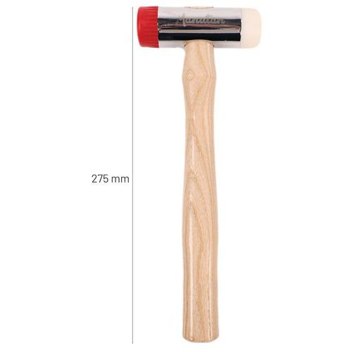 Massette à embouts interchangeables. Tête en acier finition chromée. Manche en frêne. Les surfaces frappées ne marquent pas par les embouts. Livré avec deux embouts caoutchouc et bois dur.