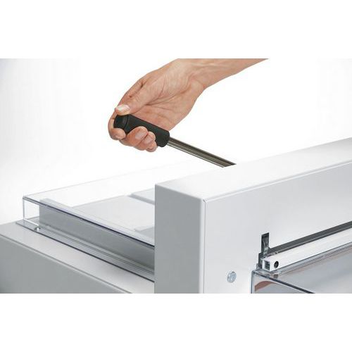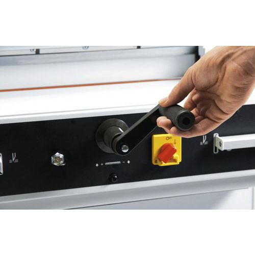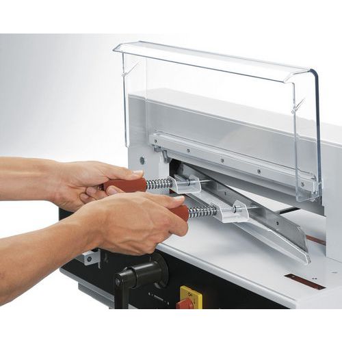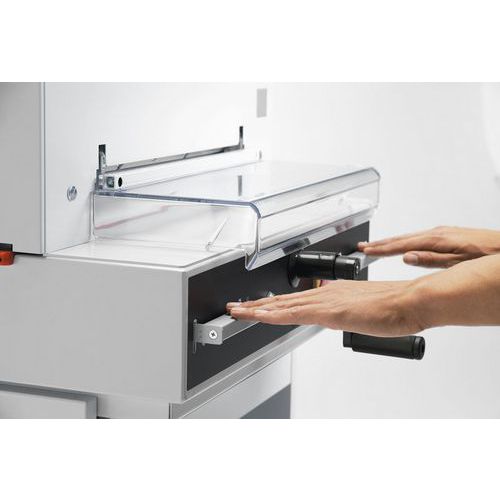 - Massicot électrique avec longueur de coupe de 430 mm.