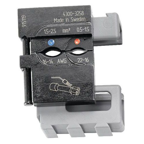 | Intitulé du produit | Matrice pour cosses pre-isolées, Réf. Fabricant: 821462, Capacité (Dimensions): 0.5-1.5 mm², 1.5-2.5 mm² |