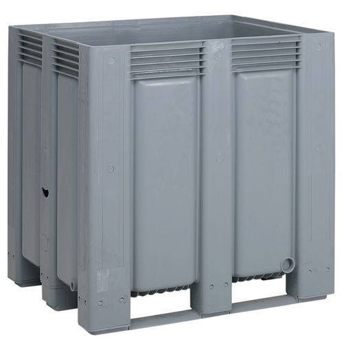 - Caisse palette grise en plastique étanche à 3 semelles renforcées.