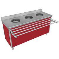 Meuble de pré-tri mural p/adulte, avec 3 trous vide-déchet + porte-sac, Coloris: Rouge, Type: Meuble de tri